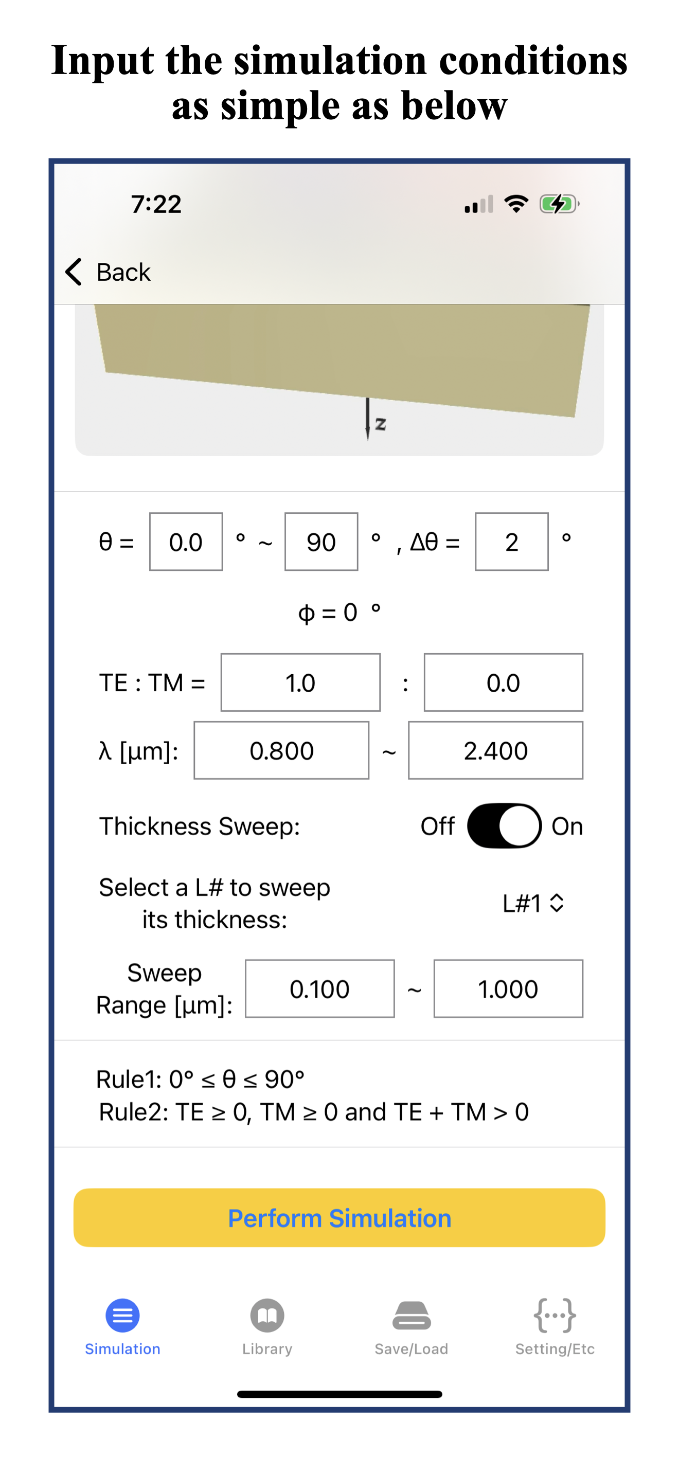– Freeware mode is offered, which allows to simulate less than four layers, but infinite repetition of the designed layers within three layers is possible. Therefore, several cases for the academic calculations are possible without subscription.